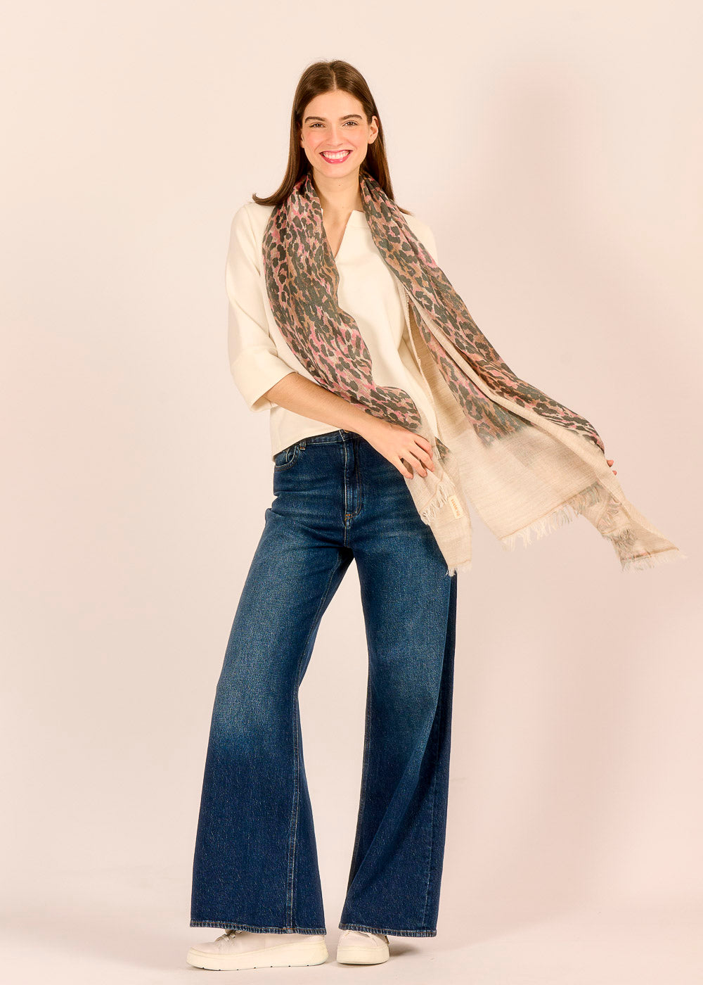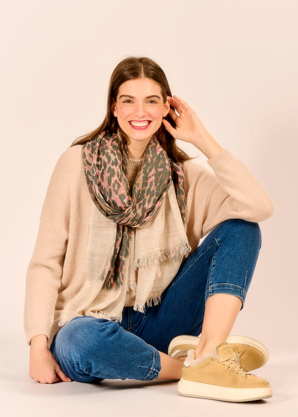 Ob locker um den Hals oder lässig über die Schultern gelegt ‒ Dieses Leo-Tuch ist das perfekte Accessoire für jede Jahreszeit. Das Trendmuster in zarten Rosa- und Beigetönen lässt sich fantastisch kombinieren.