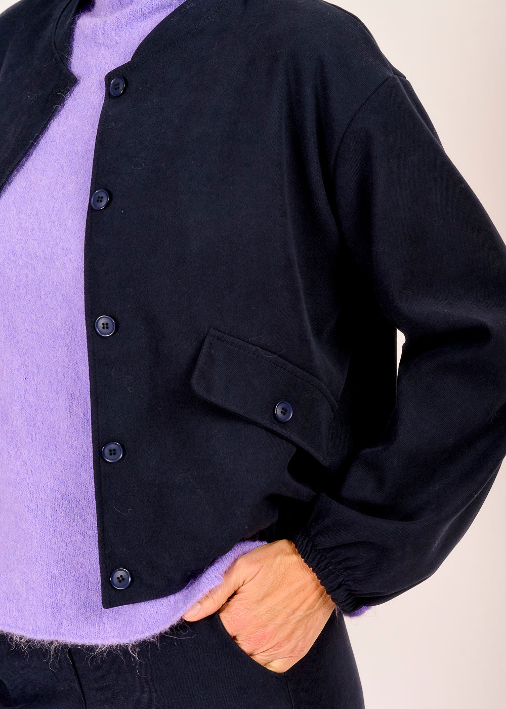 Dieser lässige Bomberino in tiefem Dunkelblau passt einfach zu jedem Outfit. Der moderne Schnitt mit raffinierten Details sorgt für einen stilvollen, urbanen Look. In Kombination mit der passenden Hose wirkt er besonders edel.
