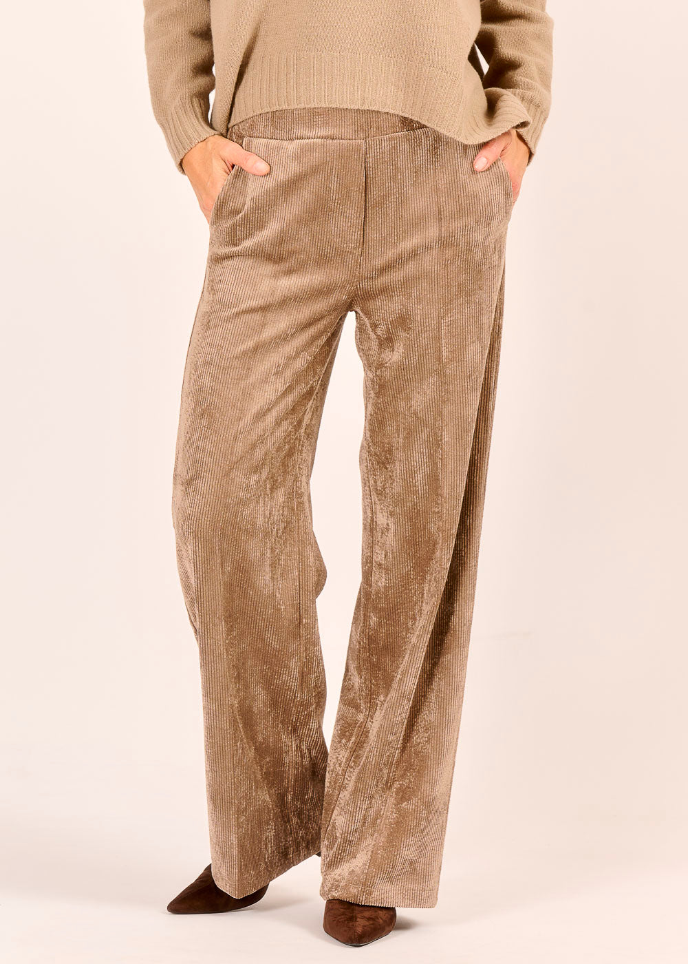 Die Cordhose in einem warmen Beigeton strahlt zeitlose Eleganz aus. Der weiche Trendstoff und die schmeichelhafte Passform machen sie zum Lieblingsstück für Casual-Looks. Besonders modern wirkt Cord mit dem passenden Pullover als monochromer Look gestylt.