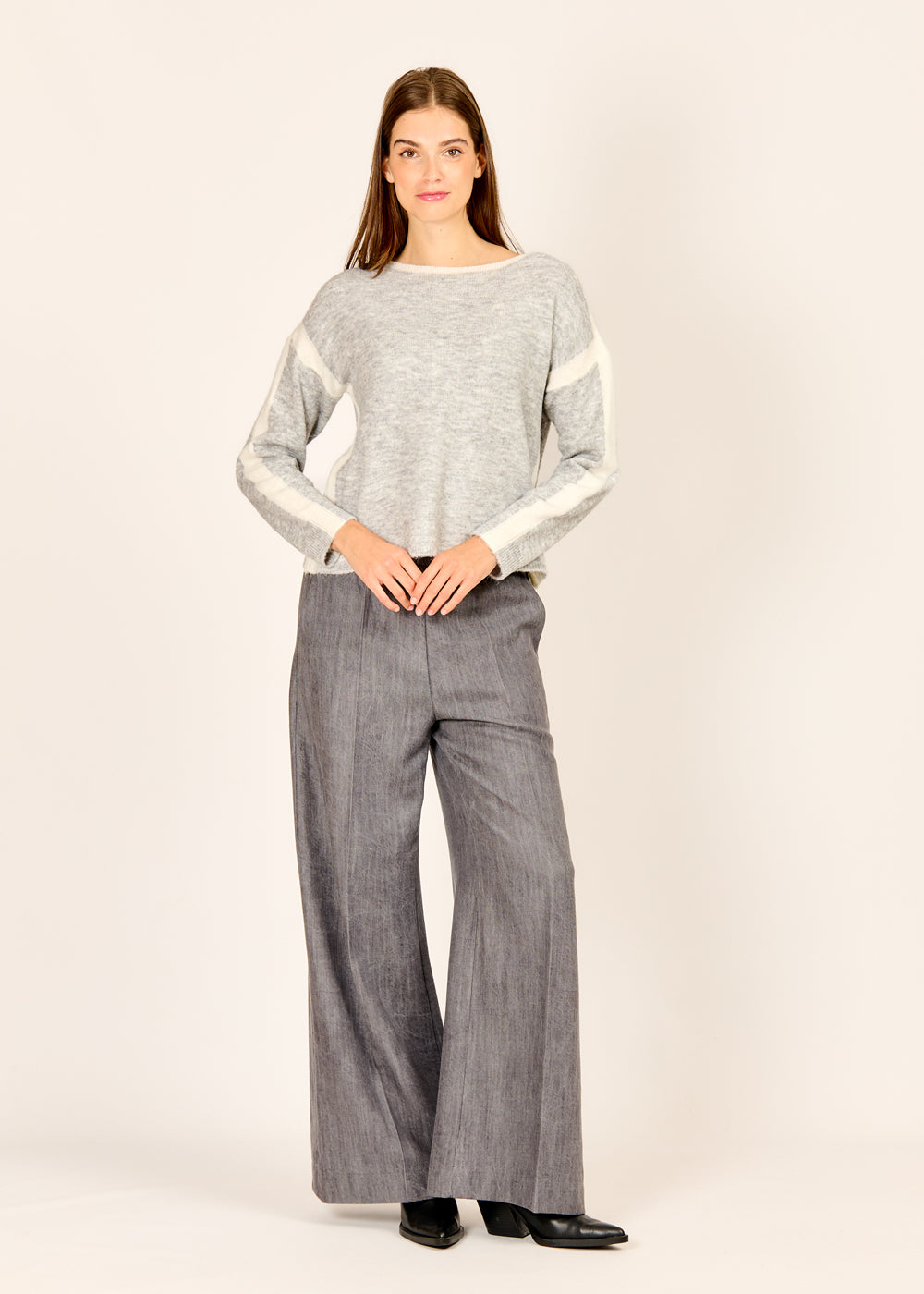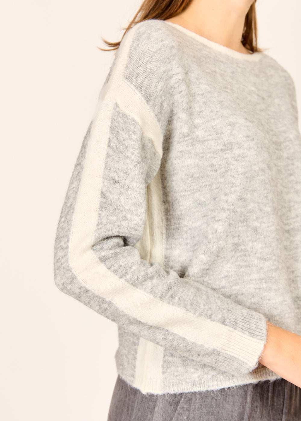 Der Pullover in edlem grigio überzeugt mit einer feinen Intarsie, die für hochwertige Strickkunst und langlebige Qualität steht. Dezente Streifen auf den Ärmeln verleihen dem zeitlosen Design eine sportive Note. Das weiche Material sorgt für angenehmen Tragekomfort und macht ihn zum vielseitigen Allrounder. Ob casual kombiniert oder elegant gestylt – dieser Pullover setzt auf subtile Raffinesse.