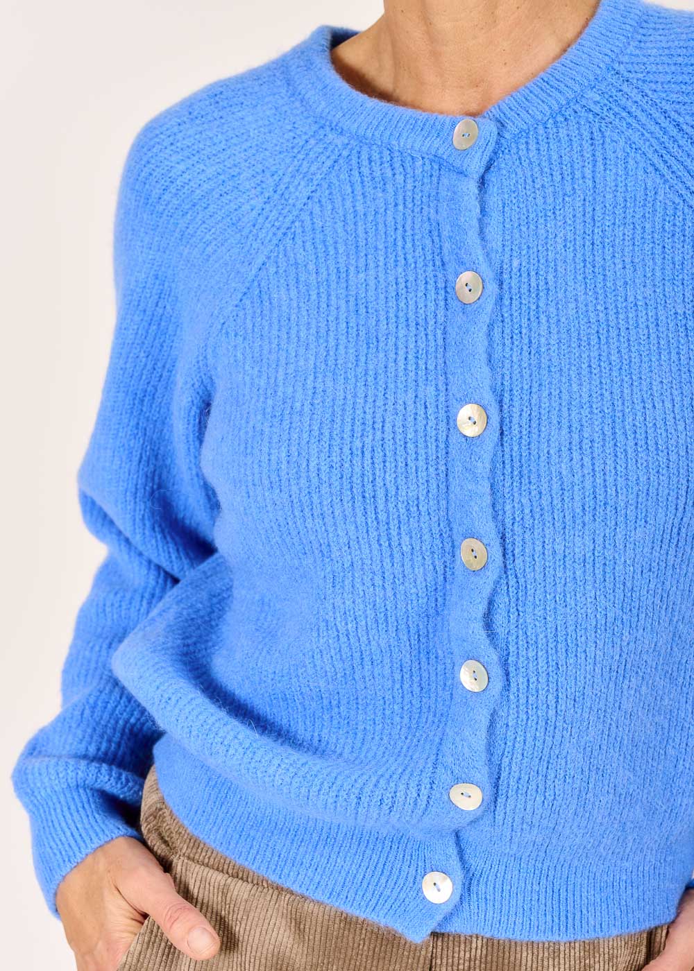 Frische zum Anziehen: Der himmelblaue Strick Bomberino aus Alpakawolle umhüllt dich angenehm warm und fühlt sich wunderbar weich auf der Haut an. Der moderne Schnitt verleiht jedem Outfit eine entspannte, stilvolle Note.