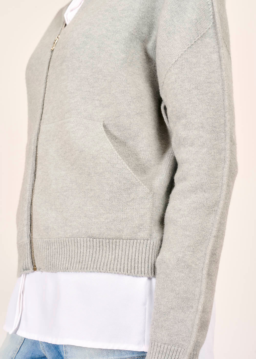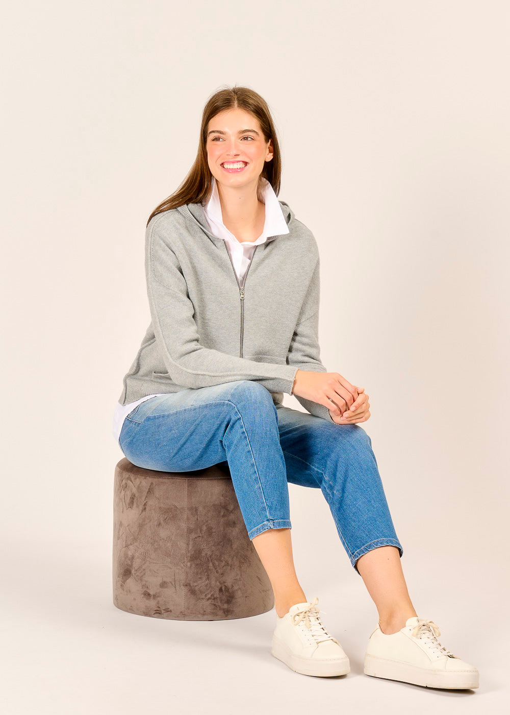Genieße luxuriösen Komfort mit unserer edlen Strickjacke in sanftem Grigio. Die hochwertige Verarbeitung und das kuschelige Material machen sie zu deinem neuen Lieblingsteil. Ein besonderes Detail ist die seitliche Naht an den Ärmeln, die dem lässigen Hoodie-Schnitt eine moderne Note verleiht. Egal, ob über einem Hemd oder T-Shirt, diese Strickjacke ist perfekt für einen stilvollen und entspannten Look.
