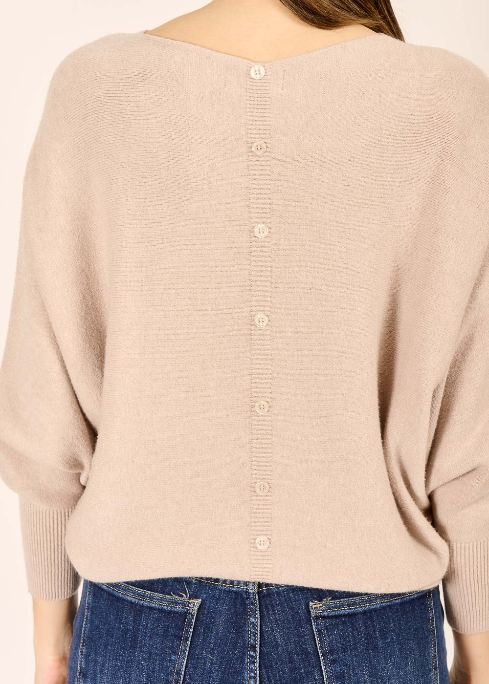 Dieser Pullover überrascht mit einer raffinierten Knopfleiste am Rücken. Durch die weiten Ärmel wirkt der Look entspannt und elegant zugleich. Weiche Viskose sorgt für ein angenehmes Tragegefühl.