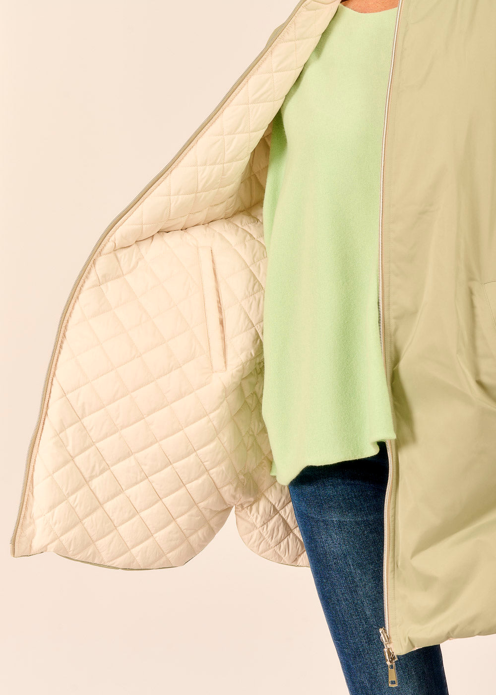 Der Wendebomberino sorgt durch den langen Schnitt für maximalen Komfort in der kühlen Übergangszeit. Dank seines cleveren Wendekonzepts lassen sich unterschiedliche Looks stylen. Die Farbe Pictacchio verleiht deinem Look Frische, die gesteppte Seite strahlt Ruhe und Gelassenheit aus.