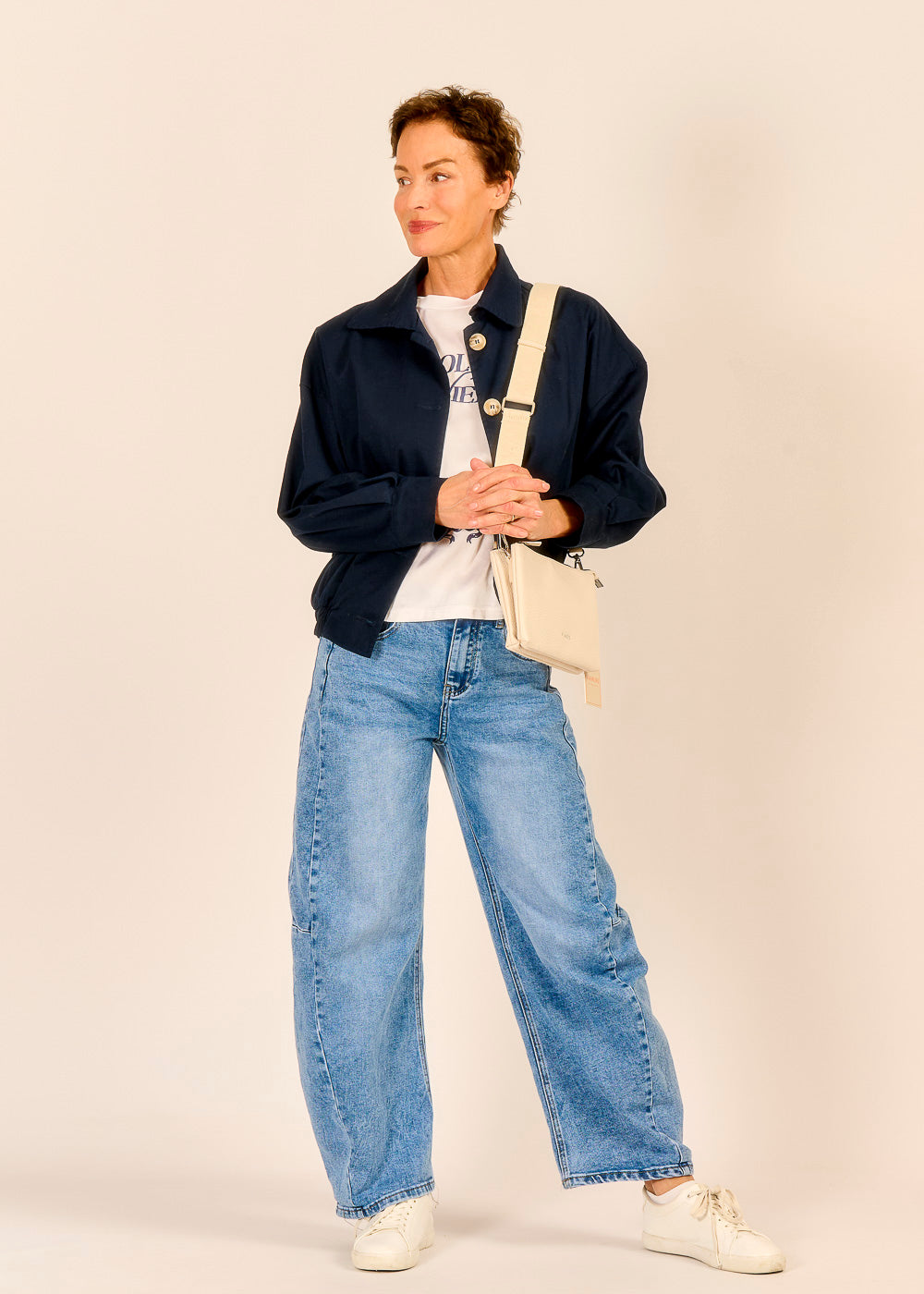 Die kleine Umhängetasche von VIAMORI in der zeitlosen Farbe Panna ist der perfekte Begleiter für jeden Tag. Der doppelte Reißverschluss sorgt für eine praktische Aufteilung, während das kompakte Format ideal für unterwegs ist.
