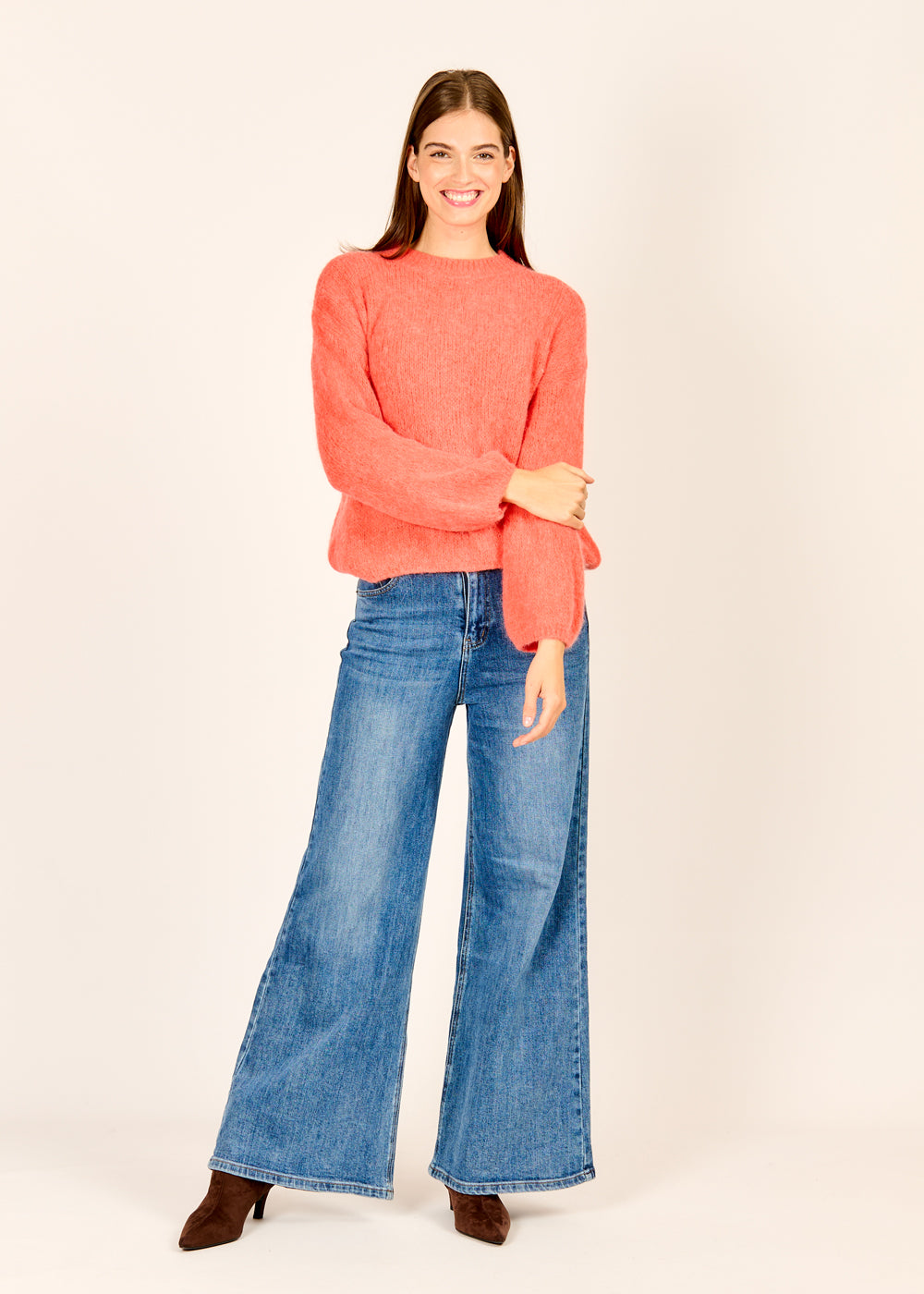 Hol dir den Wow-Effekt mit unserem modischen Pullover in der lebendigen Farbe Corallo. Die Ärmel mit ihrem subtilen Volumen – sozusagen ein Balloon-Arm – verleihen dem Pullover eine moderne und verspielte Note. Das flauschige Material sorgt nicht nur für einen stylischen Look, sondern auch für ein wunderbar weiches Tragegefühl.