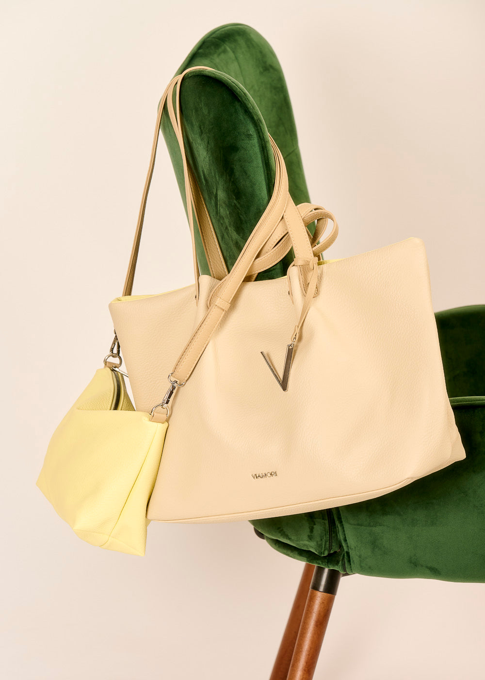 Dieser Shopper ist ein überraschendes Multitalent und dein praktischer und stilvoller Begleiter für den Alltag. Das neutrale Beige passt zu jedem Outfit, während die Innentasche einen überraschenden Farbtupfer setzt und gute Laune garantiert. Die clevere Innentasche ist nicht nur ein Ordnungwunder, sondern strahlt auch einzeln.